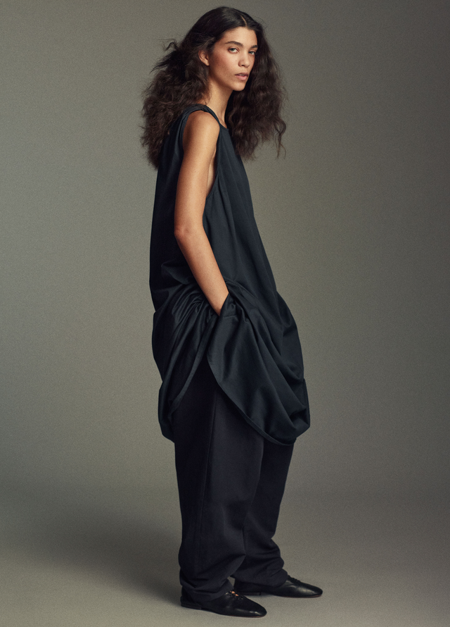 Draped sleeveless Debby dress in organic cotton jersey