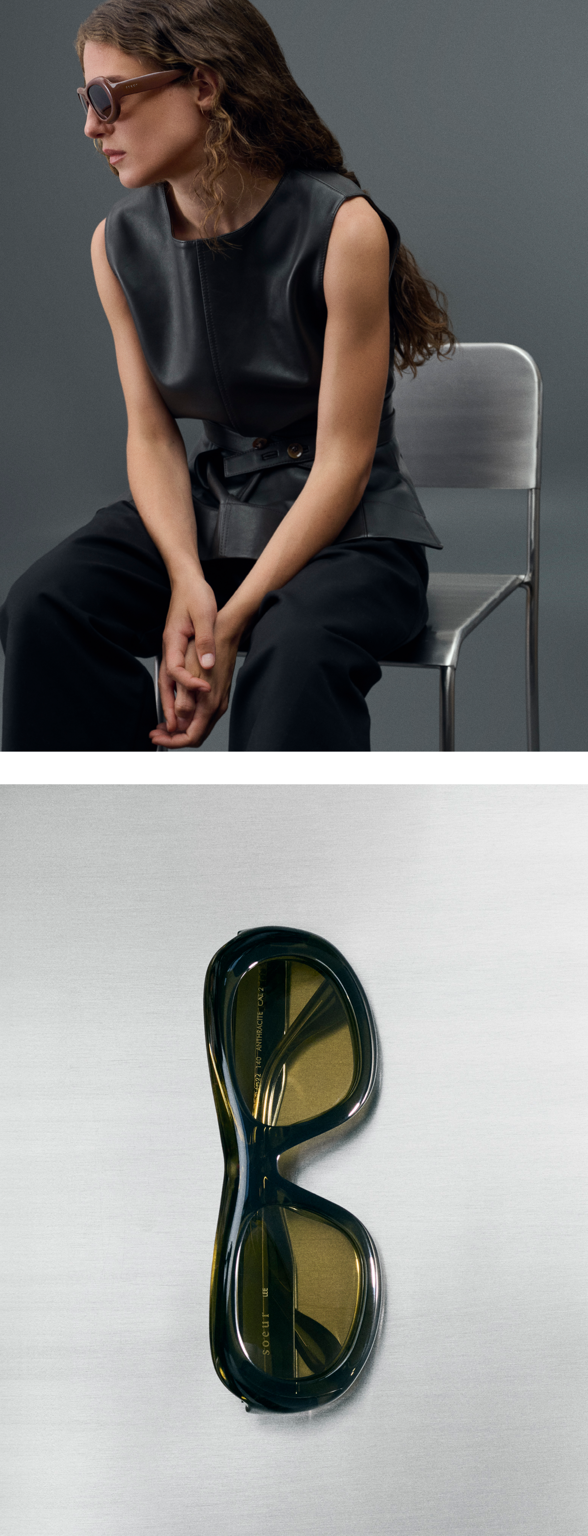 Made in Italy, the glasses meld materials – acetate and metal – with the Soeur colour identity: deep brown, mineral taupe, dense mocha, luminous anthracite and intense black. The attention to detail continues with a custom-designed case for each pair, accompanied by a cotton pouch and a branded care cloth.