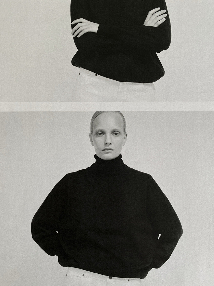 Flexible and reversible, this double-sided garment can be worn as a jumper or coat depending on the season. Two plain fabrics envelop the body in a soft, sophisticated and comfortable material, designed to last throughout the seasons.