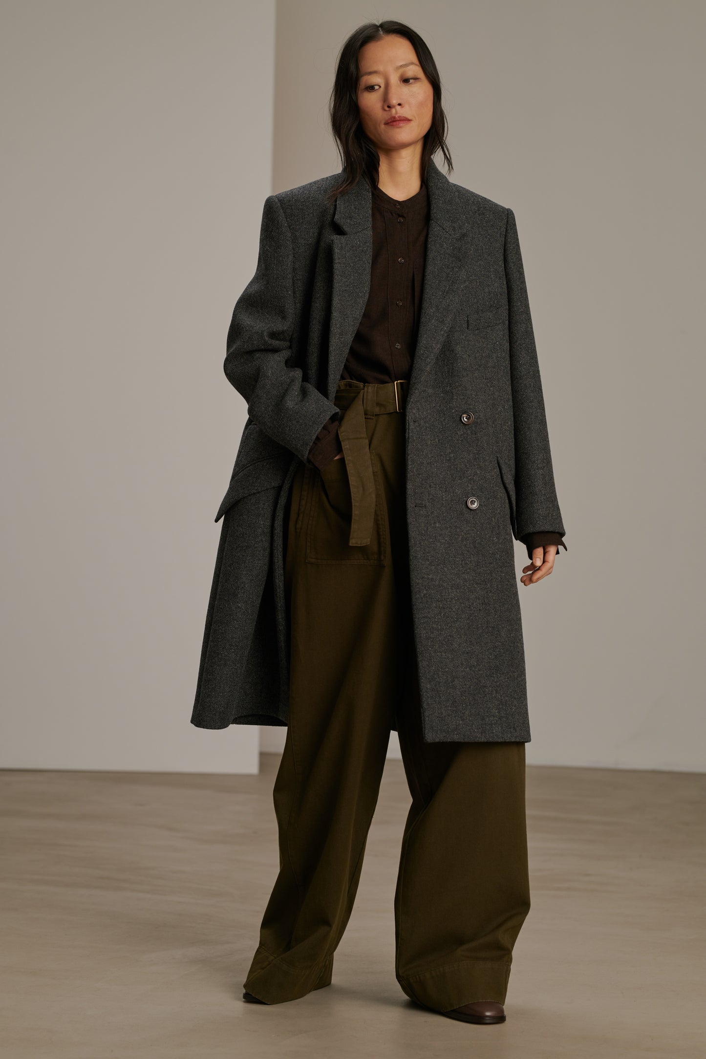 wadden coat Heather grey double tweed long coat