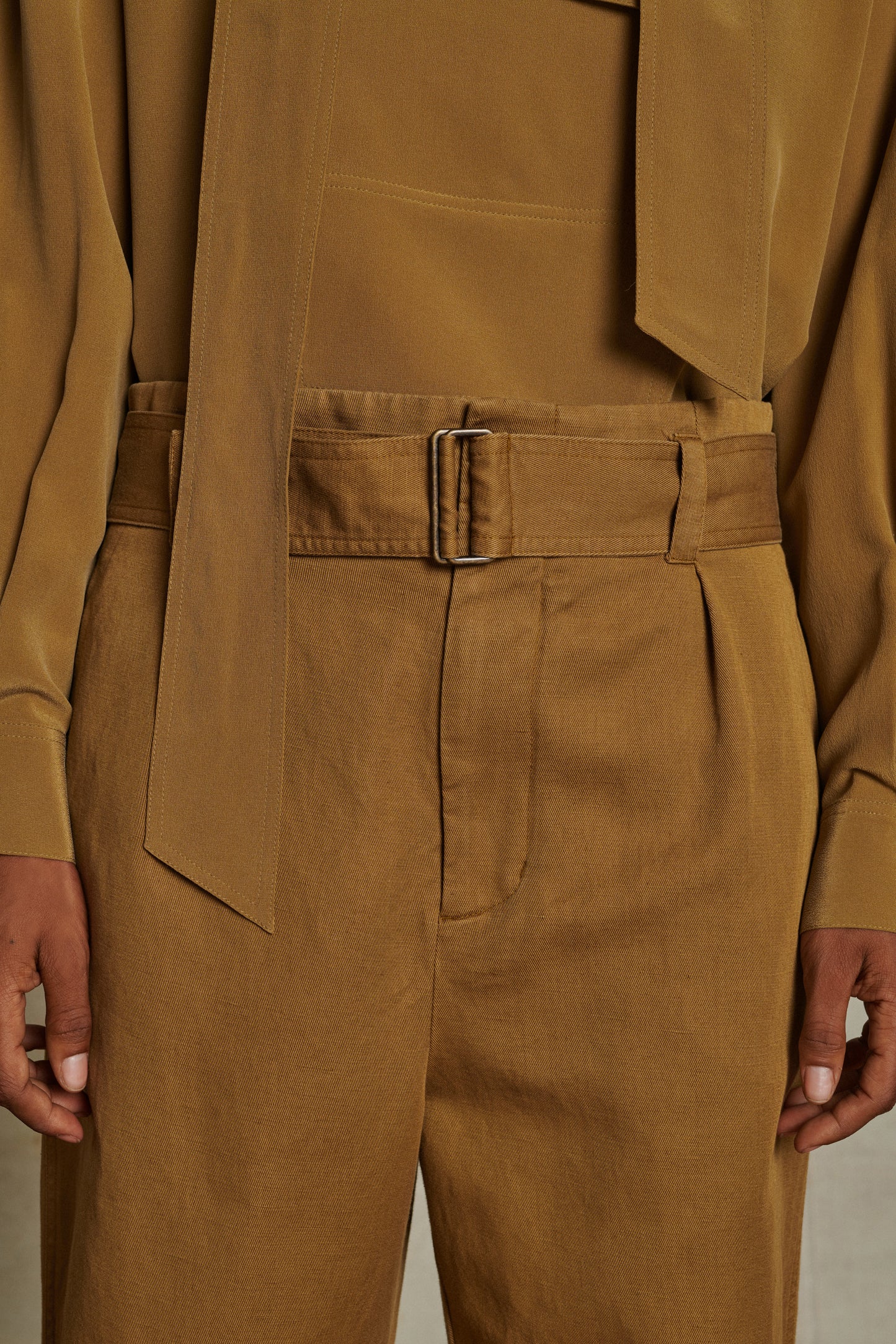 Soft linen and cotton cargo-style trousers bronze