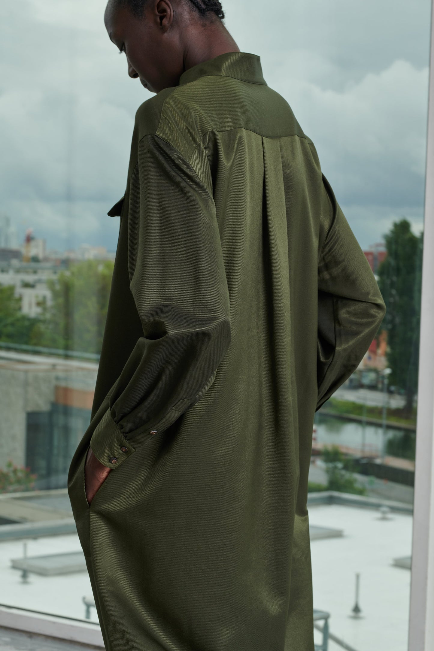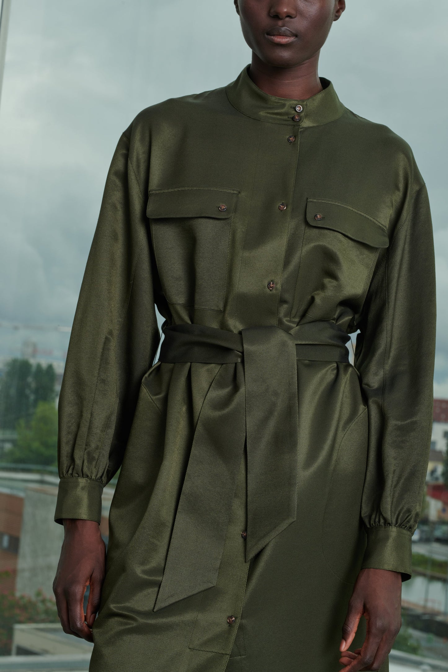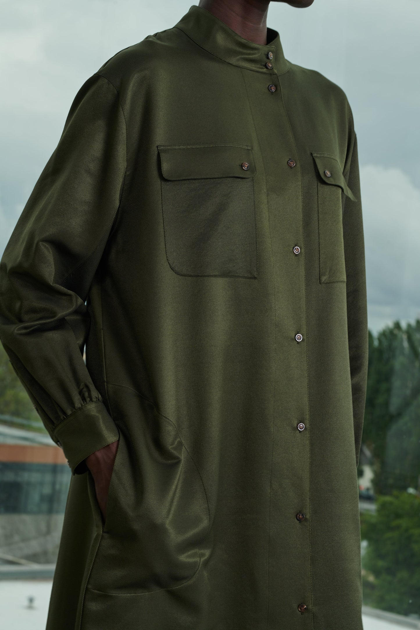 - Buttoned stand-up collar