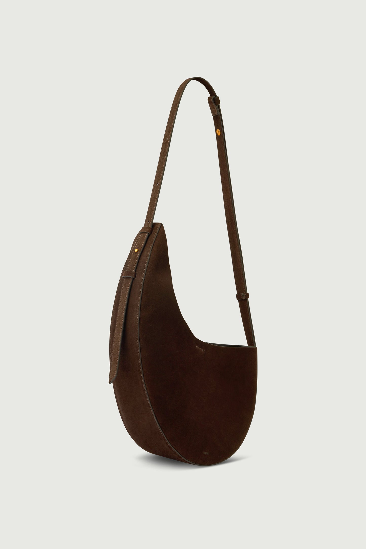 - Dark brown split leather bag with shoulder strap